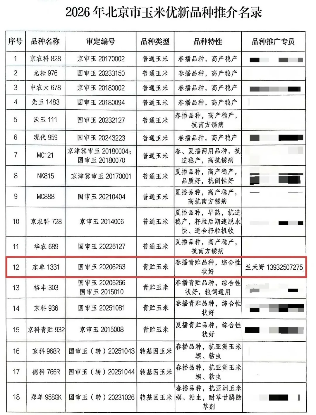 近日,北京市發布了2026年農業主導品種和主推技術通知,遼寧東亞種業自主培育的東單1331入選2026年北京市優新品種推介名錄。